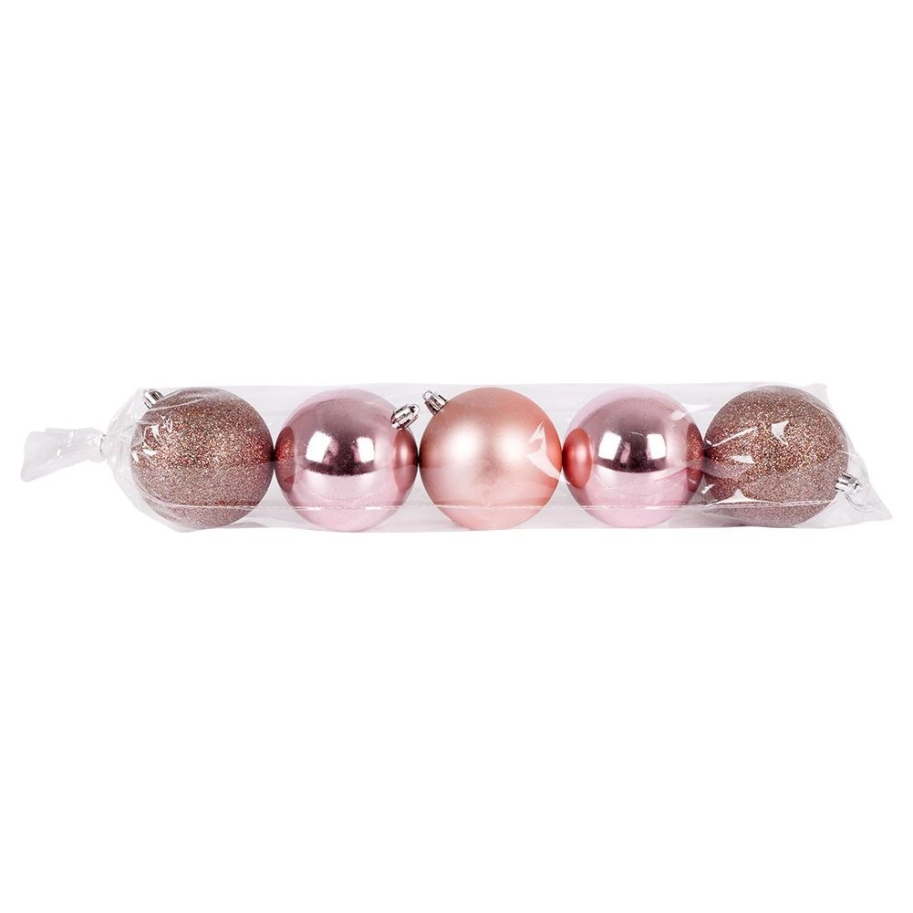 Teremtsen tökéletes ünnepi hangulatot az időtálló, 5 darabos rózsaszín gömbkészlettel. A fényes, csillogó és matt felületek kombinációja mélységet, kontrasztot és finom csillogást ad a fának. A minőségi műanyagnak köszönhetően a gömbök könnyűek, tartósak és biztonságosak – kiváló választás családoknak gyerekekkel és háziállatokkal.