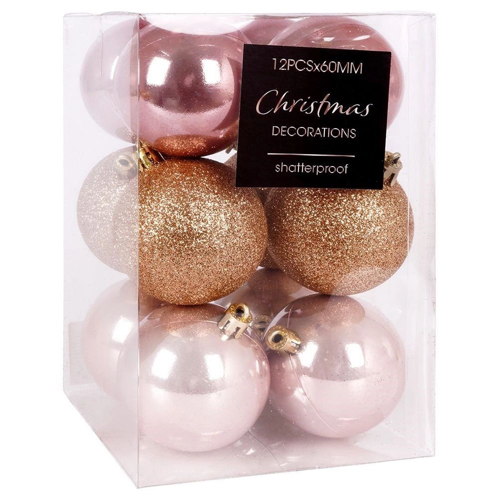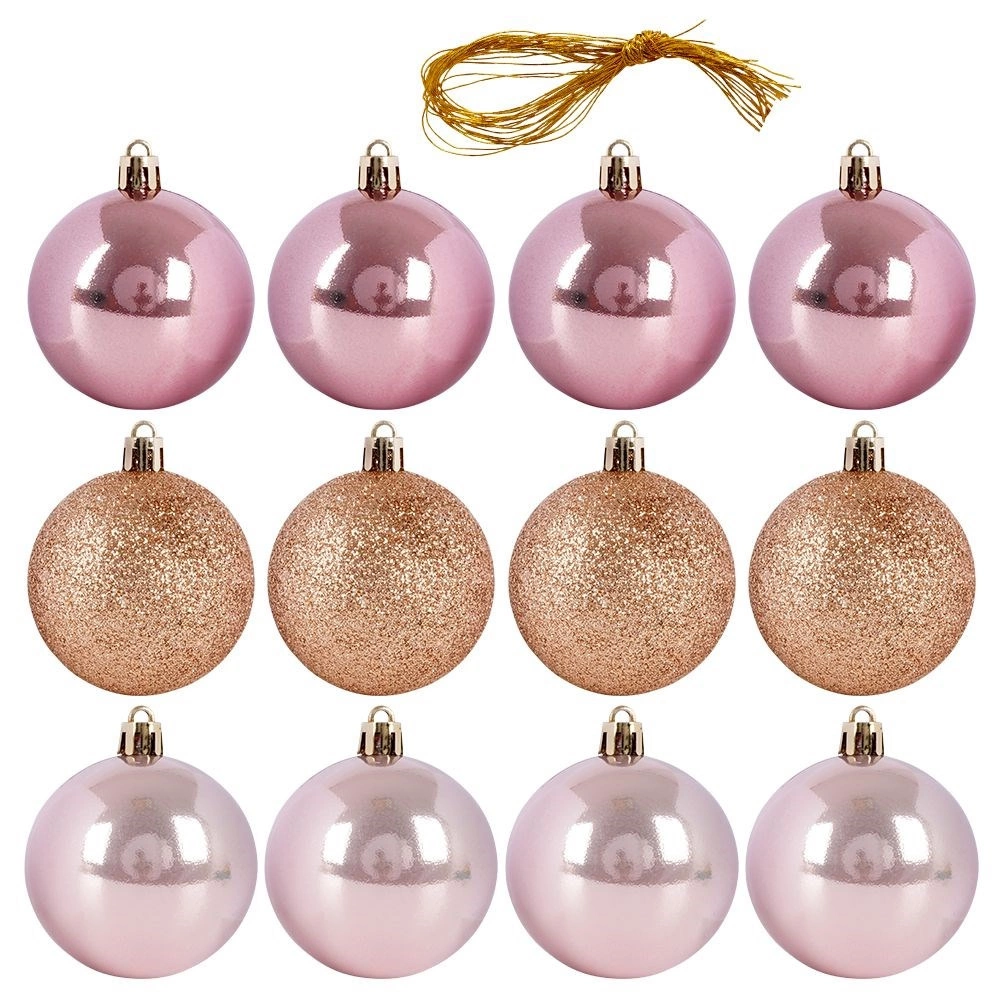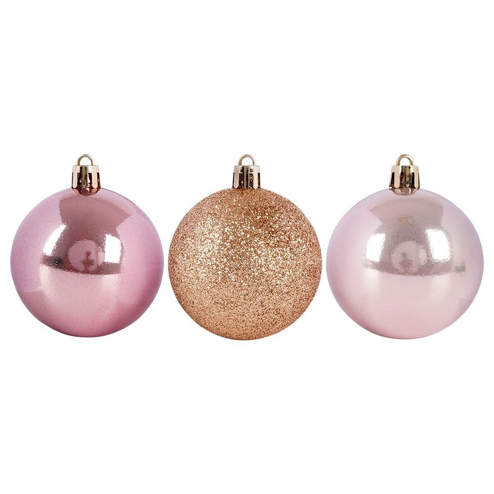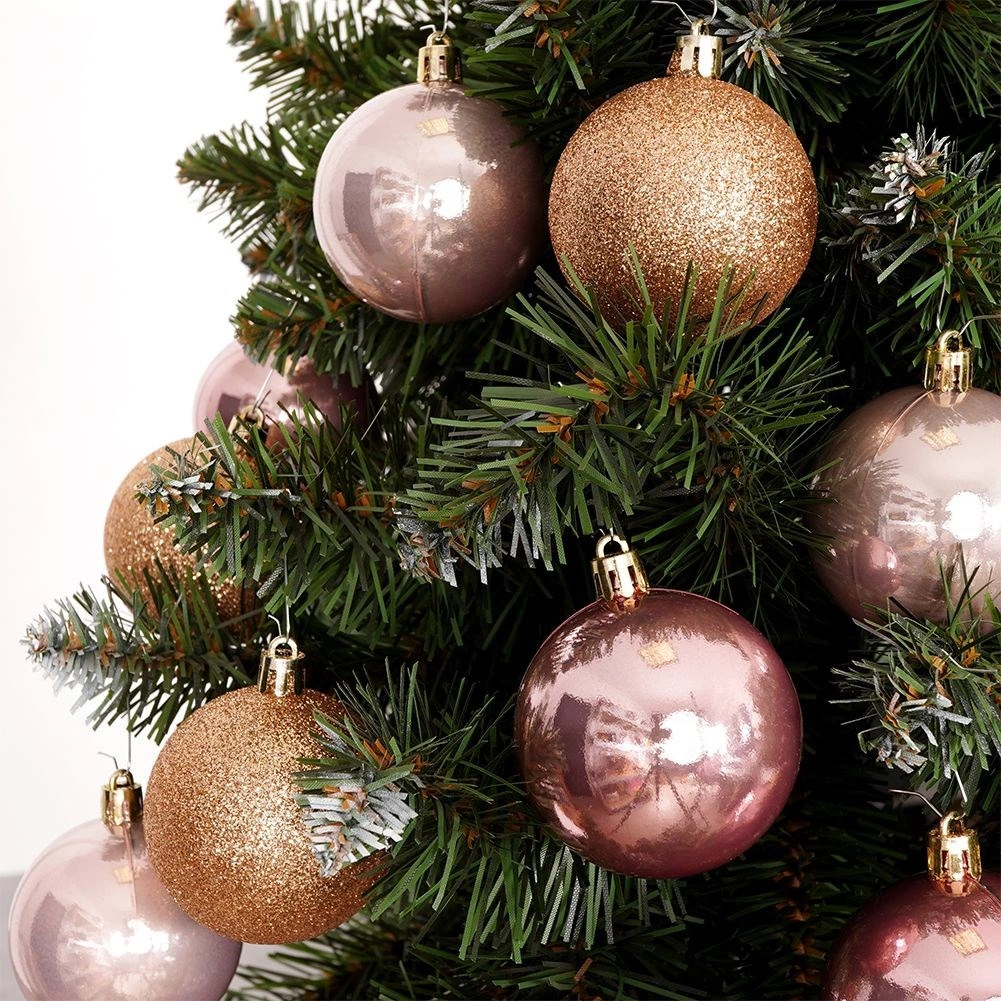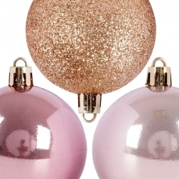 Fényes, csillogó és matt kivitel rózsaszín és rose gold árnyalatokban, amelyek harmonikus, elegáns megjelenést adnak a karácsonyfának.