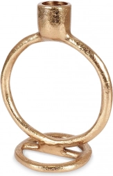 Design gyertyatartó minőségi alumíniumból, luxus arany kivitelben, hosszú gyertyákhoz 2 cm átmérőig. Letisztult vonalai és körgyűrűs formája figyelemfelkeltő akcentust ad, amely könnyen párosítható modern, skandináv és indusztriális enteriőrrel is.