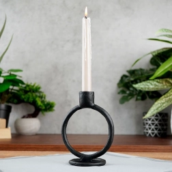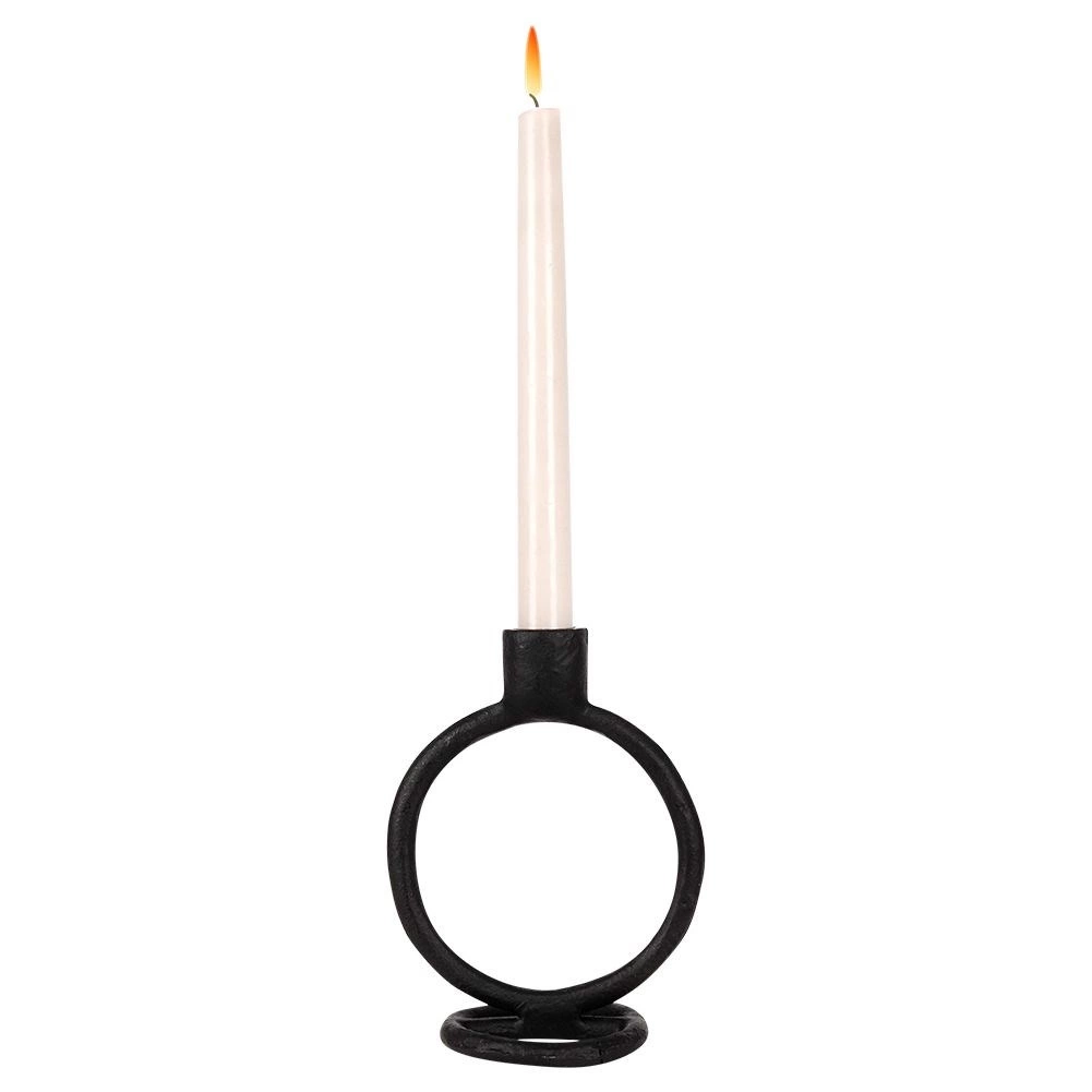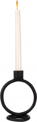 A szoborszerű kerek forma és a matt fekete szín modern akcentussá teszik a gyertyatartót, amely felesleges díszítés nélkül emeli ki a belső tér karakterét.