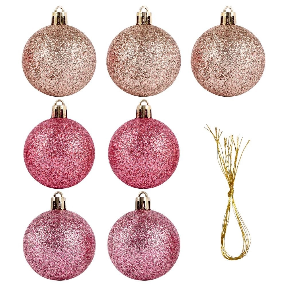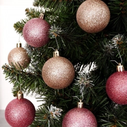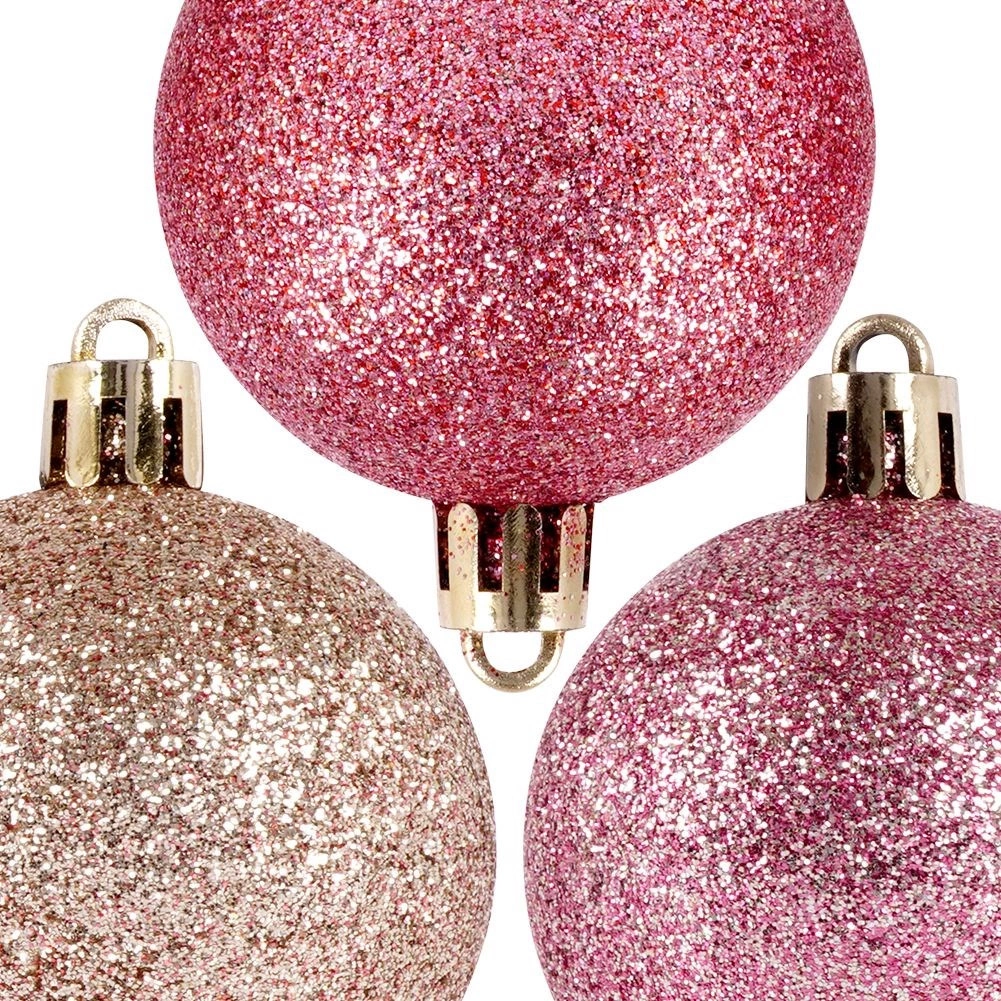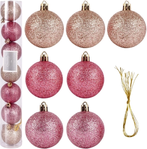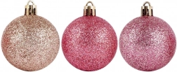 A készlet három rózsaszín tónust kombinál glitteres felülettel a luxus, ragyogó megjelenésért, amely kiemeli bármely karácsonyi dekoráció fényét.