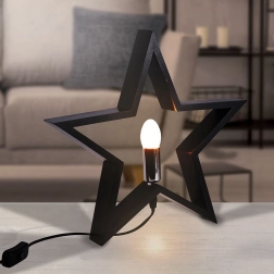 Ez a dekoratív, csillag alakú asztali lámpa meghitt fényt és modern akcentust visz a térbe. A fekete fa kivitel elegáns hatást kelt, és könnyen kombinálható az ipari, modern vagy klasszikus stílussal.