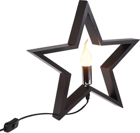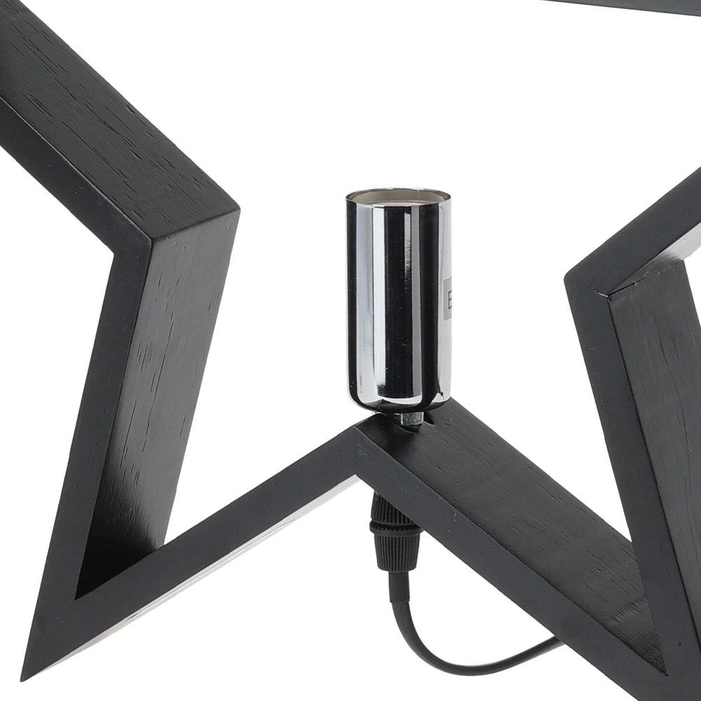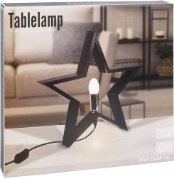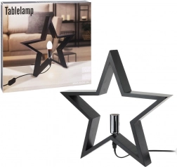 Stílusos, csillag alakú asztali lámpa fekete színben, minőségi fából, amely beragyogja bármelyik enteriőrt. Kínál látványos dizájnt, hálózati táplálást kapcsolóval, E14 foglalatot (az izzó nem tartozék) és 1,5 m-es tápkábelt. Remekül illik a nappaliba, hálószobába és dolgozószobába is.