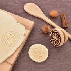 A pecsét tartós bükkfából készült, ideális kekszekhez, mézeskalácshoz és cukrászati masszák díszítéséhez. A hosszú élettartam érdekében javasolt a kézi mosás és a kíméletes ápolás (nem mosogatógépbe).