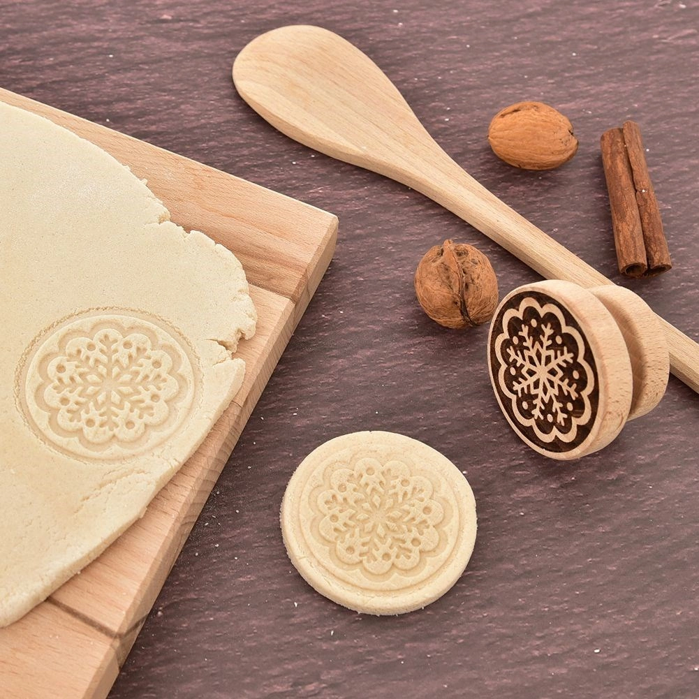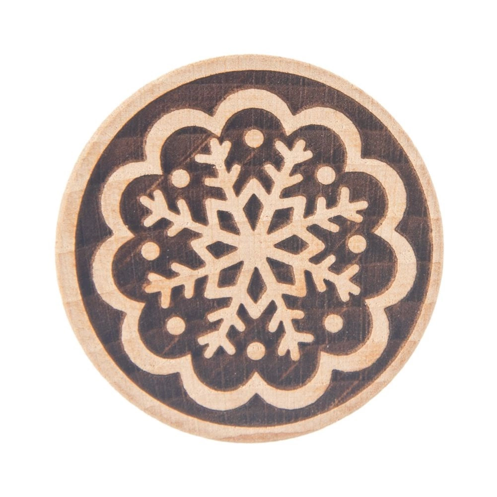 Ez a minőségi fa sütipecsét remek eszköz minden sütéshez. Az egyik oldalán precízen kifaragott hópehely motívum tiszta és határozott lenyomatot hagy a tésztán. Kényelmes fogásának köszönhetően a gyerekek is szívesen használják – a pecsételés szórakoztató, az eredmény pedig professzionális hatású.