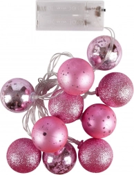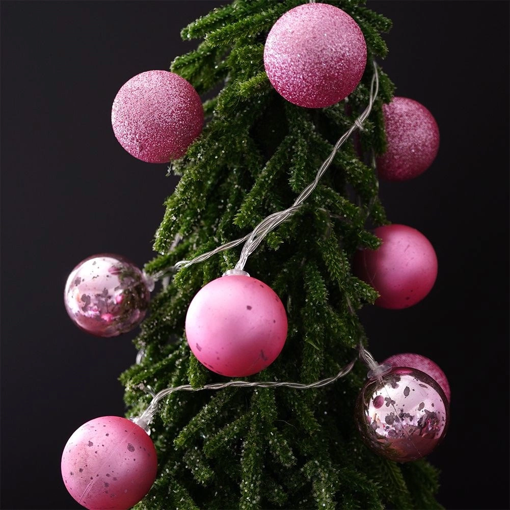 Stílusos karácsonyi világítás rózsaszín gömbökkel, 4 cm átmérővel és összesen 10 LED-del, amelyek meleg fehér fénnyel világítanak. A gömbök törésálló műanyagból készülnek matt, fényes és csillogó kivitelben, és beltéri használatra alkalmasak. A 2× AA elemes tápellátásnak köszönhetően szinte bárhová elhelyezhetők – karácsonyfára, ablakba, kandallóra vagy korlátra.