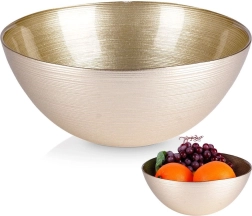 Stílusos, aranyszínű üvegtál 21 cm átmérővel és 1,7 l űrtartalommal, ideális salátákhoz, gyümölcsökhöz és sós rágcsálnivalókhoz. Matt felület és finom vízszintes csíkozás teszi a terítéken különlegesen látványossá. Kiváló tálaláshoz, és sokoldalúan használható bármely háztartásban.