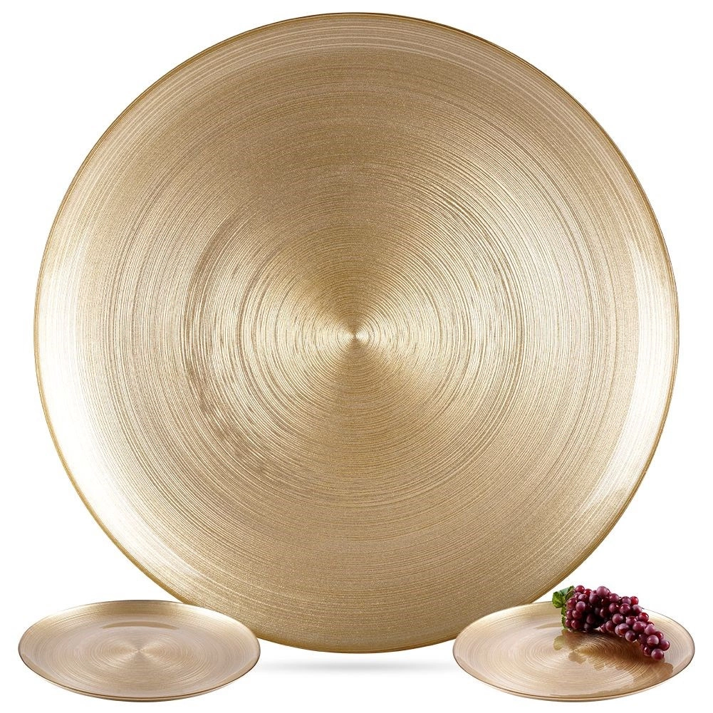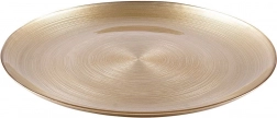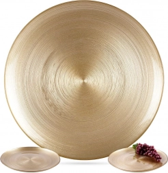 Elegáns, 32,5 cm átmérőjű lapos tányér luxus arany színben, ideális mindennapi étkezéshez és ünnepi alkalmakra is. Minőségi üvegből készült, stílusos, matt aljjal és finom csíkokkal, sokoldalúan használható reggelihez, ebédhez, desszertekhez, valamint szervírozó tálcaként előételekhez. A simára csiszolt felületnek köszönhetően könnyen tisztítható, és remekül kiegészíti a klasszikus és modern terítést egyaránt.