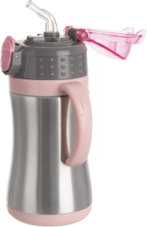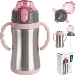 Élvezze a kényelmes, csöpögésmentes ivást. A bögre belül és kívül minőségi rozsdamentes acélból készült, a tető és a fülek tartós műanyagból vannak, rózsaszín színben. A vákuumszigetelés segít hosszabb ideig stabil hőmérsékleten tartani az italt, legyen az tea, kakaó vagy frissítő limonádé.