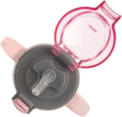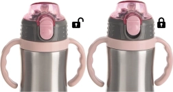 A gombos tető biztonsági zárral megakadályozza a véletlenszerű kinyílást. A felhajtható szívócsőr és a szívószál révén iváskor nem szükséges megdönteni a bögrét, amit a gyerekek és a felnőttek egyaránt értékelnek. A szilikon tömítés minimálisra csökkenti a folyadékszivárgás kockázatát – ideális kirándulásokhoz, autóba és iskolatáskába.