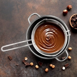 Olvassza a csokoládét, vajat vagy viaszt egyenletesen és odaégés nélkül a vízfürdőhöz tervezett masszív rozsdamentes acél tálban.
