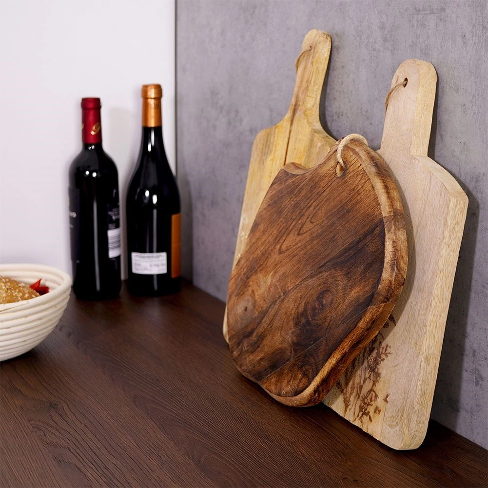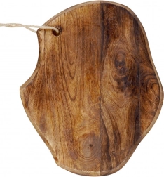 Ez a mangófából készült deszka ötvözi a funkcionalitást és a dizájnt. Szabálytalan, organikus formájával és a fa gyönyörű, enyhén antikolt erezetével nemcsak az ételek előkészítésekor, hanem tálaláskor is remekül szolgál. Masszív felépítésének és 2 cm-es vastagságának köszönhetően szeletelés közben stabil és tartós.