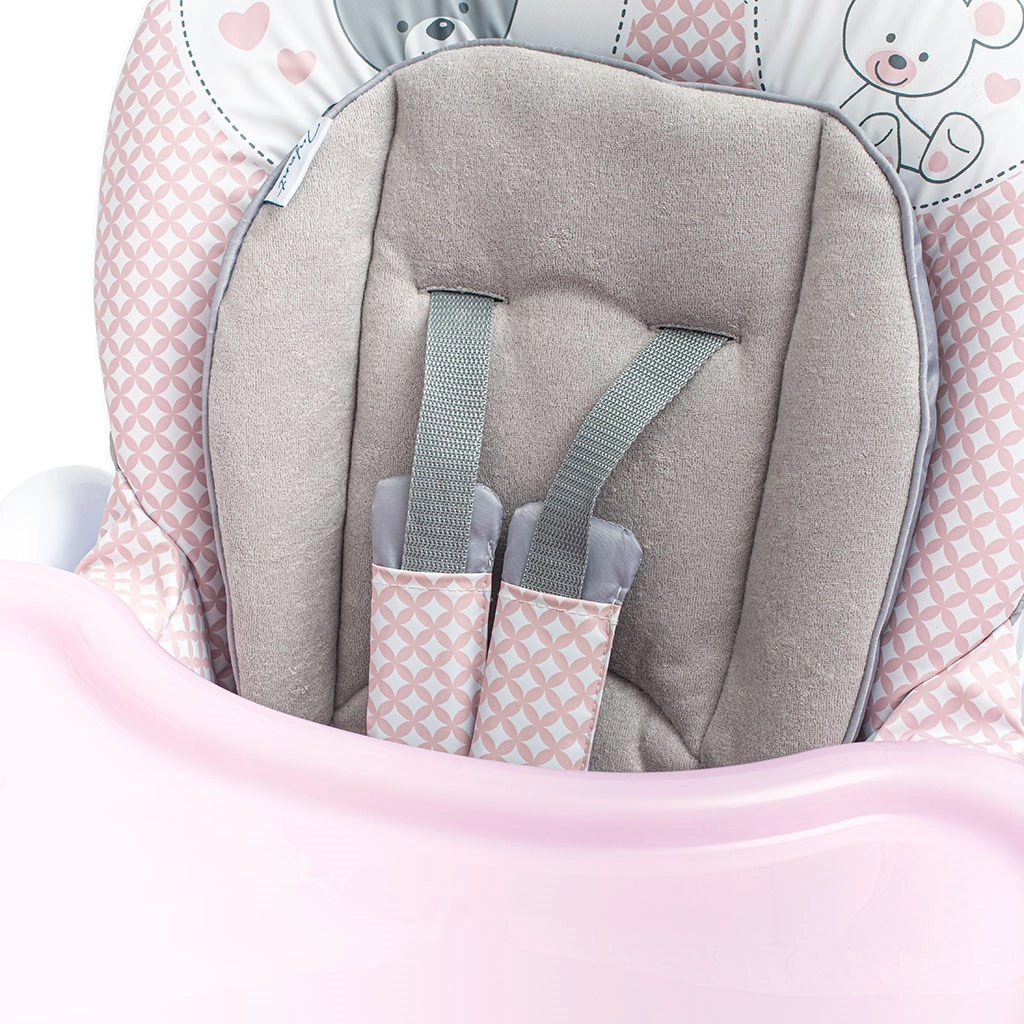 A BABY MIX Infant rózsaszín etetőszék egyesíti a kényelmet, a biztonságot és a könnyű karbantartást. A 7 fokozatú magasságállításnak köszönhetően egyszerűen a gyermek növekedéséhez és az asztal magasságához igazítható. A háromállású háttámla és a kétpozíciós lábtartó megfelelő ergonómiát biztosít etetéskor és pihenéskor is. A praktikus dupla, levehető tálca helyet ad étkezéshez és játékhoz, míg az alsó kosár mindent kéznél tart.