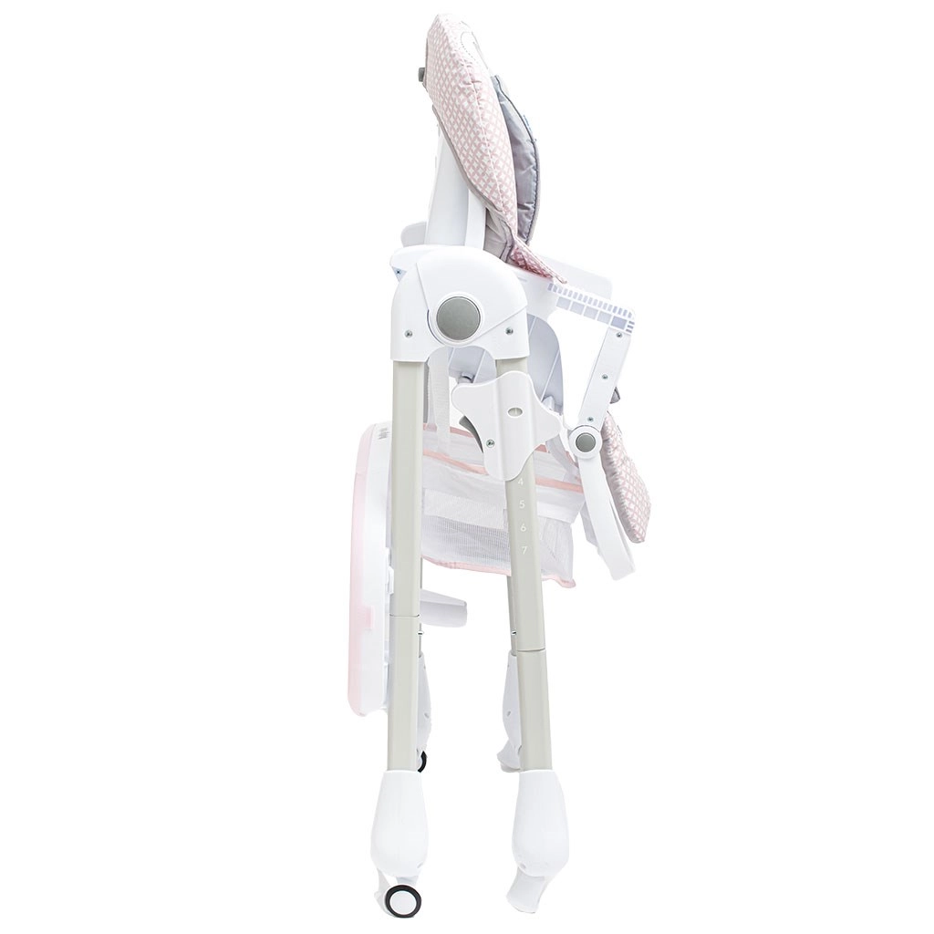 Az etetőszék 7 különböző magassági pozícióba állítható, így a gyermek mindig kényelmesen eléri a tálcát vagy a családi asztalt.