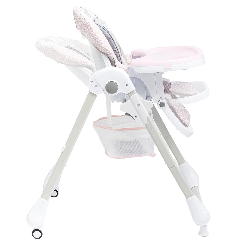 A dupla, levehető tálca gyorsan tisztítható, az ülés alatti kosár pedig helyet biztosít előkéknek, cumisüvegeknek és játékoknak.