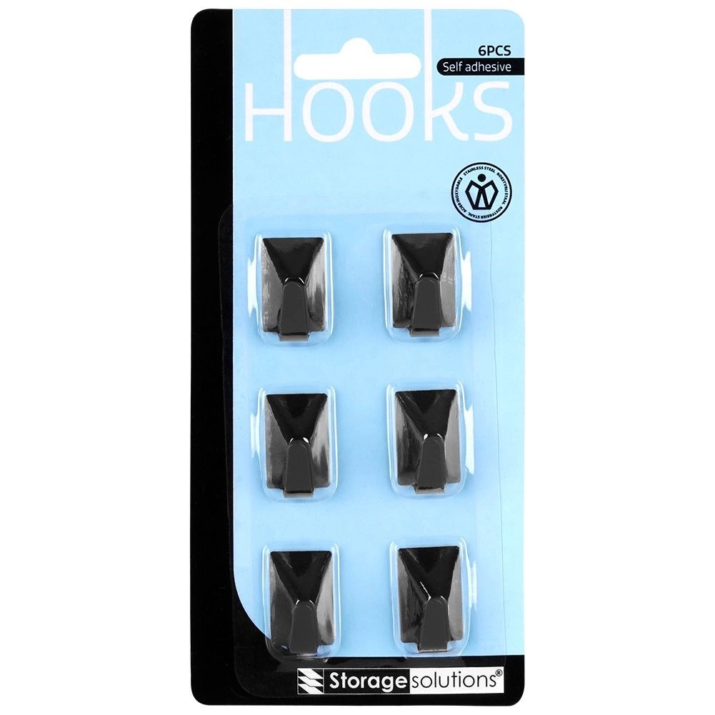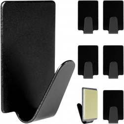 Stílusos és praktikus öntapadós akasztók matt fekete színben a mindennapi rendszerezéshez a konyhában és a fürdőszobában. A 6 darabos, rozsdamentes acélból készült készlet fúrás nélküli, egyszerű szerelést, erős tartást és sokoldalú felhasználást kínál törölközőkhöz, konyharuhákhoz, kulcsokhoz vagy kábelekhez.