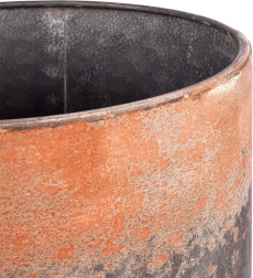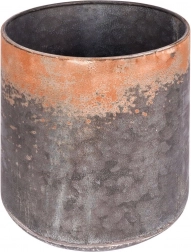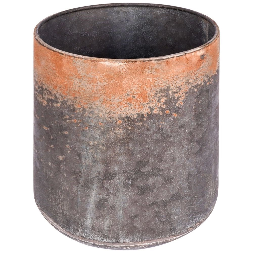 Ezüstös tónusú, rozsdahatású acél kaspó ipari stílust kölcsönöz a belső térnek, és kiemeli a zöld növények szépségét.