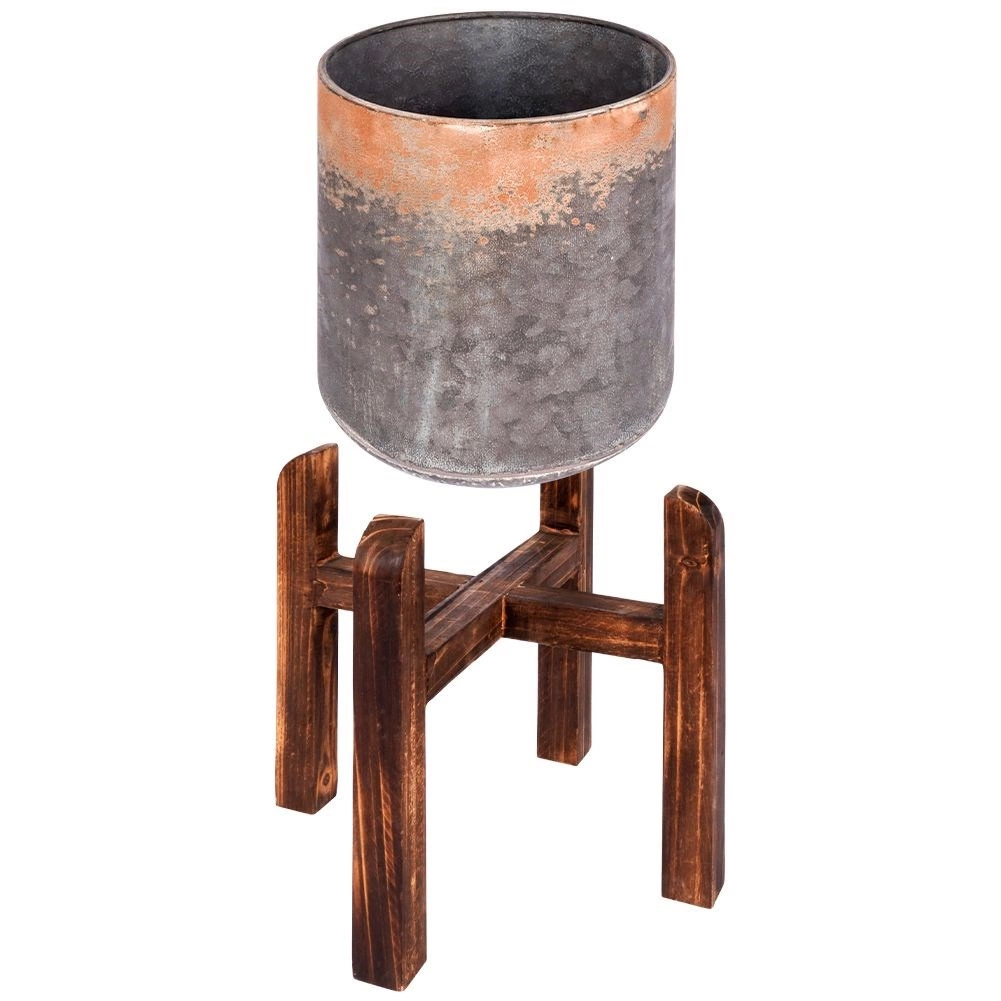 Vigyen karaktert az enteriőrbe a retro stílusú állványos kaspóval. Az ezüstös-patinás hatású acél tartály és a természetes fa állvány markáns dekoratív elemet alkot, amely remekül mutat párkányon, komódon és a padlón is. Az állvány megemelt kialakításának köszönhetően növényei több teret és figyelmet kapnak.
