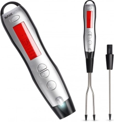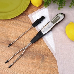 Praktikus digitális főző- és grillező hőmérő cserélhető szondával és ACER villával, amely megkönnyíti az ételek hőmérsékletének ellenőrzését. Kínál megvilágított LCD kijelzőt, 0–100 °C tartományt (32–212 °F), rozsdamentes hegyeket, 60 perces időzítőt riasztással és automatikus kikapcsolást. Remek segítő steakhez, grillezett húsokhoz, sütéshez és sütöléshez.