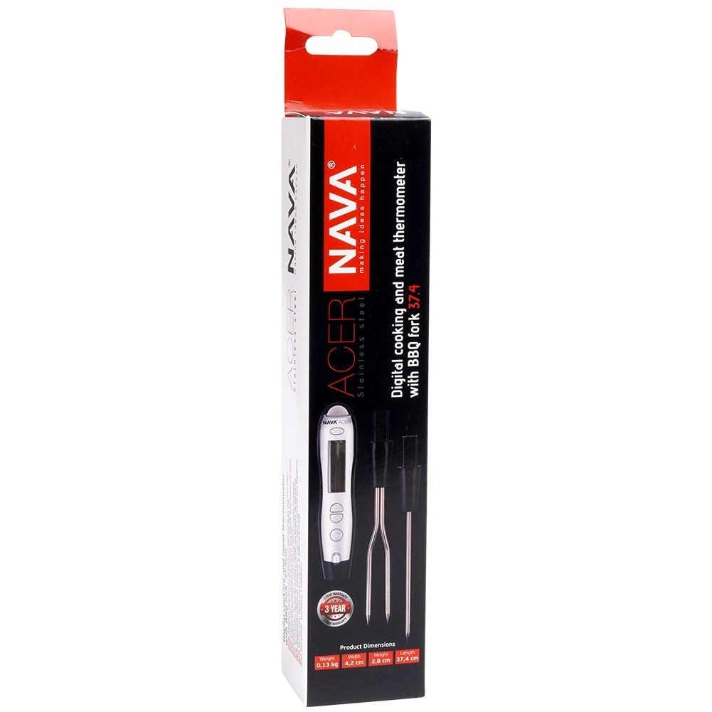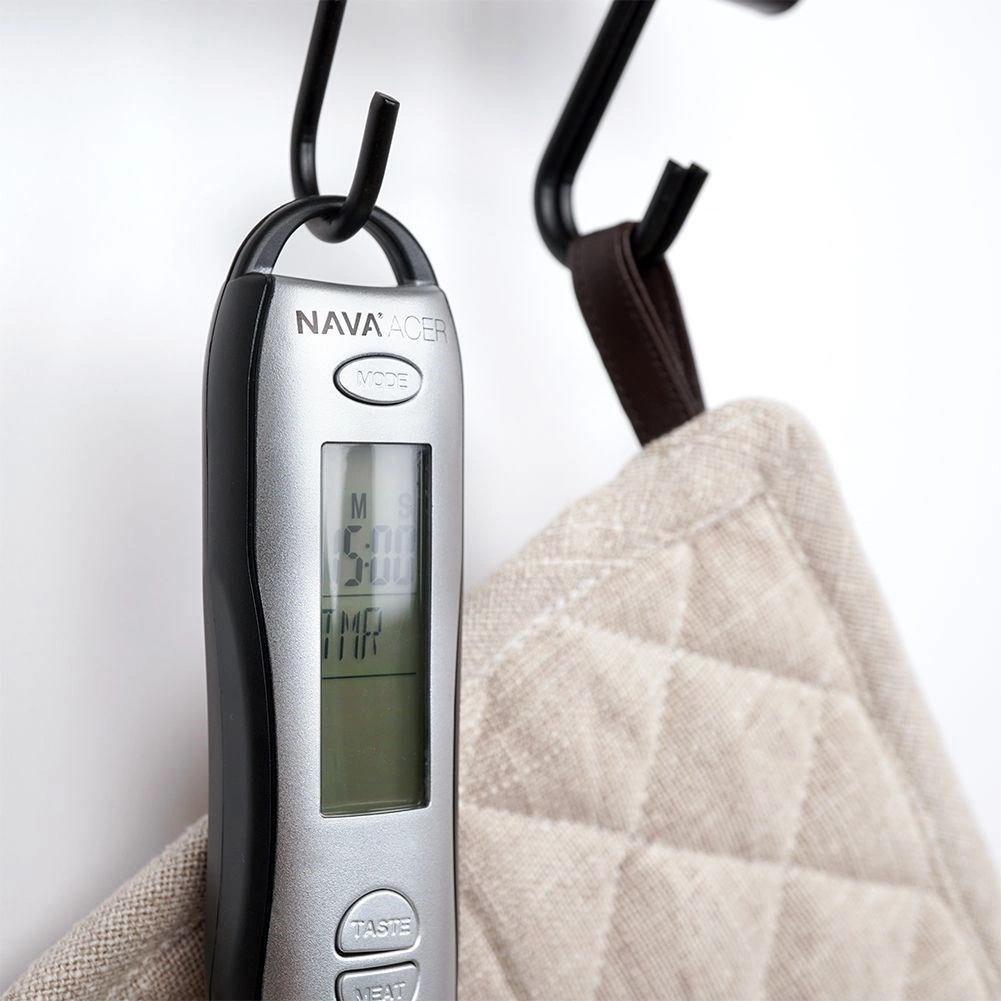 Az ACER digitális konyhai hőmérő a pontos hőmérsékletmérést kényelmes kezeléssel ötvözi. A két feltétnek – a rozsdamentes szondának és a villának – köszönhetően könnyedén megméri a húsok és folyadékok belső hőmérsékletét, miközben biztonságosan megfordíthatja a steakeket vagy kolbászokat a grillen. A háttérvilágított kijelző minden körülmény között jól olvasható, az ergonomikus fogantyú pedig kényelmes fogást biztosít.