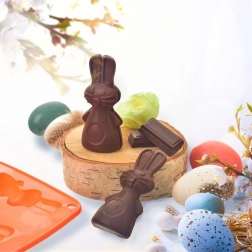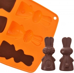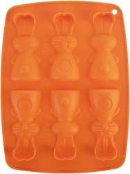 A narancssárga szilikon forma kényelmesen segít finom kekszeket, pralinékat vagy csokikat készíteni nyuszi alakban. A tapadásmentes és rugalmas szilikonnak köszönhetően a kész finomságok sérülés nélkül, könnyedén kivehetők. Az anyag nem veszi át a szagokat vagy ízeket, és helytakarékos a tárolásnál.