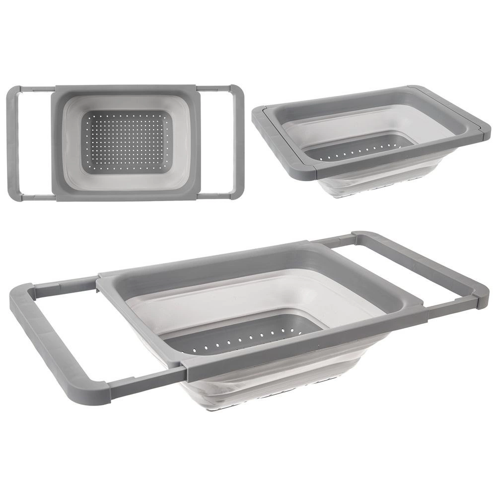 Praktikus, összecsukható csepegtető kihúzható fogantyúkkal, amely közvetlenül a mosogató fölé helyezhető, megkönnyítve a mindennapi gyümölcs- és zöldségmosást, valamint a tészta szűrését. 5,5 l kapacitásának, a kihúzható fogantyúknak és az összecsukható kialakításnak köszönhetően helytakarékos, strapabíró és mosogatógépben mosható.