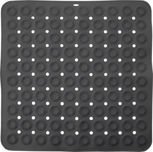 Praktikus csúszásgátló alátét zuhanyzóba vagy kádba, 54 × 54 cm méretben, biztonságos lépést biztosít a nedves felületen. A sűrű tapadókorongoknak köszönhetően stabilan rögzül, hatékony vízelvezető nyílásokkal és kellemes masszázskiemelkedésekkel a kényelemért. Tartós anyagból készült, univerzális szürke színben, amely illik bármely fürdőszobába. Biztonság, kényelem és egyszerű karbantartás egyben.