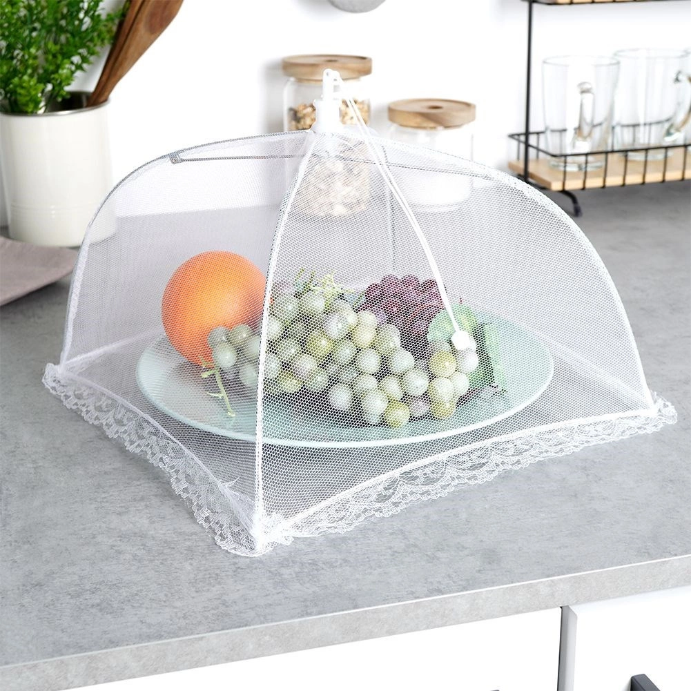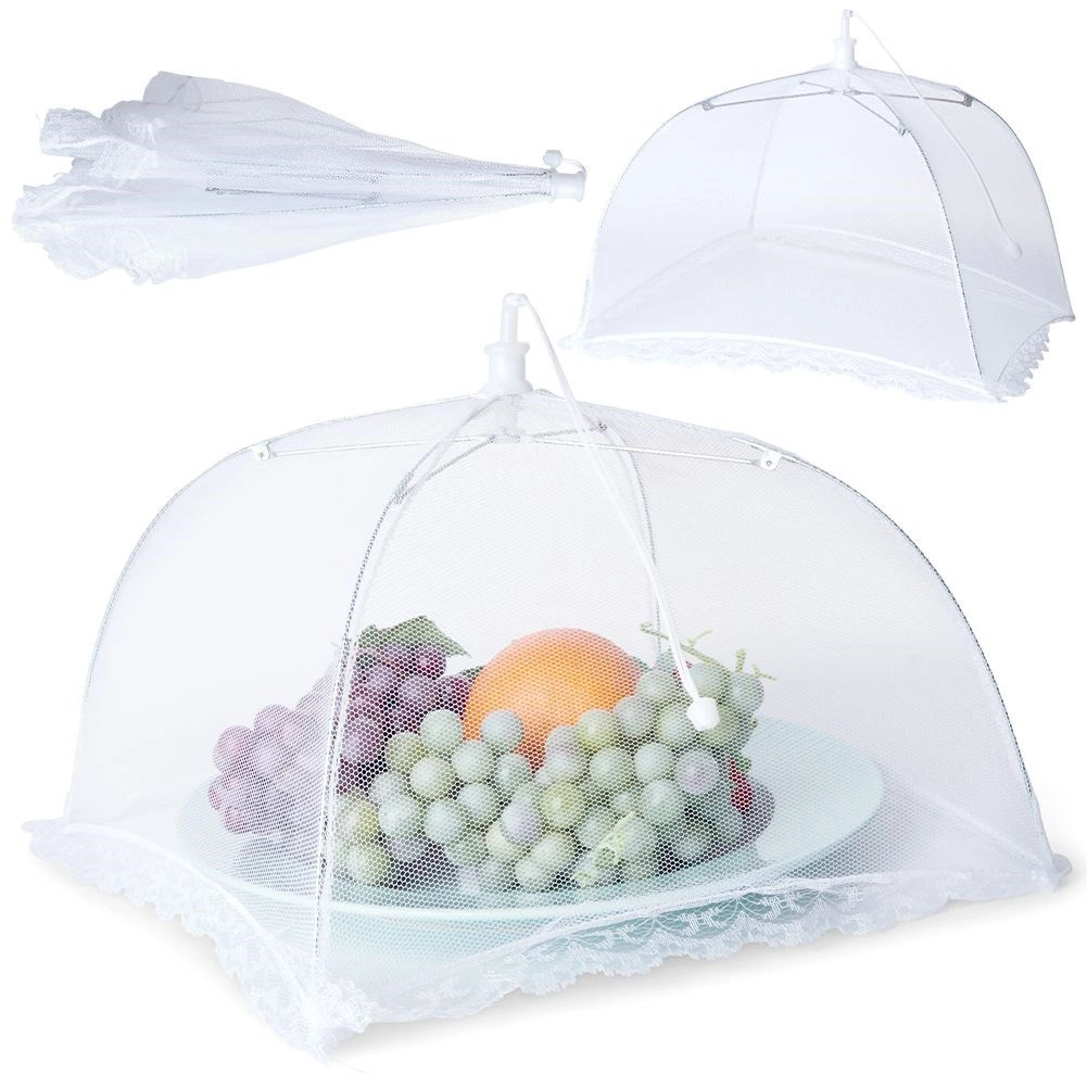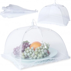 A finom szövésű háló lefedi a tányérokat és tálakat, megakadályozva a legyek és darazsak bejutását, miközben minden tökéletesen szellőzik.