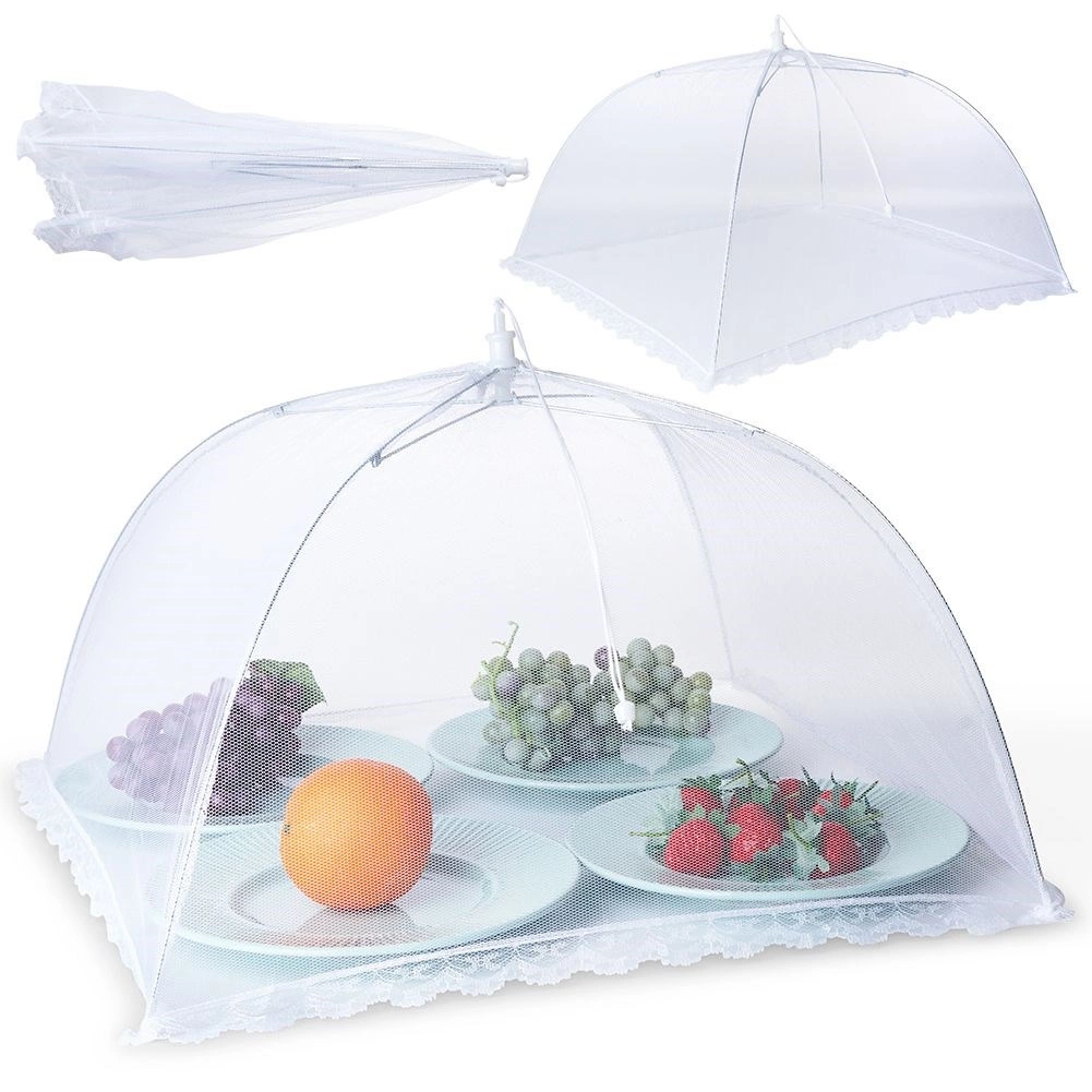 Tartsd ételeidet tisztán és biztonságban a legyektől, darazsaktól és más rovaroktól. Az összecsukható, finom hálós élelmiszervédő megbízhatóan lefedi a tányérokat, tálakat és tálcákat, miközben engedi a levegő áramlását, és nem tartja vissza a nedvességet. Mindennapi használatra és szezonális, kültéri étkezéshez is alkalmas.