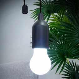 Praktikus, izzó formájú függesztett LED lámpa, amely vezeték nélküli megvilágítást nyújt, bárhol is legyen rá szükség. A zsinóros kapcsolóval egyetlen meghúzással egyszerűen be- vagy kikapcsolható, könnyű és hordozható, strapabíró műanyagból készült, és AAA elemmel működik.
