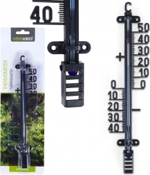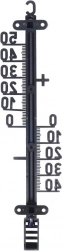 Stílusos, klasszikus kialakítású hőmérő, amely megbízhatóan méri a környezeti hőmérsékletet beltérben és kültérben. A nagy számjegyek és a jól látható osztások kiváló olvashatóságot biztosítanak nagyobb távolságból is. Kompakt méreteinek (6 × 2,5 × 25 cm) köszönhetően ideális házfalra, pergolára, erkélyre vagy előszobába.