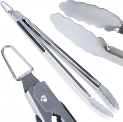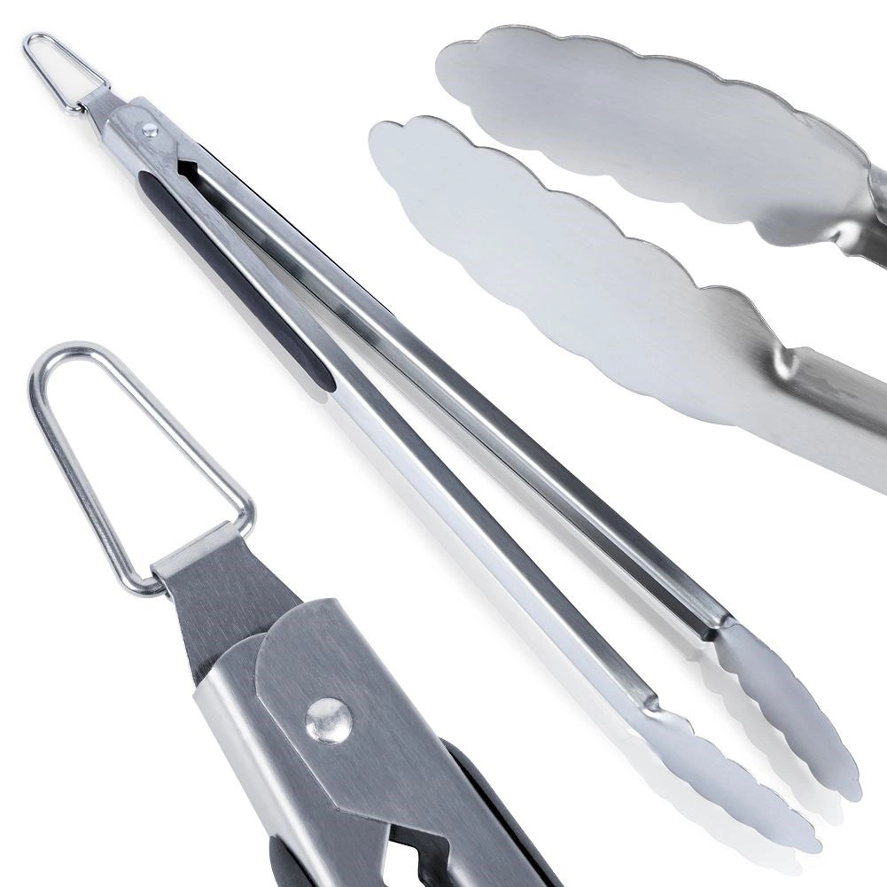 Ezek a minőségi rozsdamentes acél grillcsipeszek lehetővé teszik a hús, zöldség és más ételek kényelmes és biztonságos forgatását a grillen és a konyhában egyaránt. A hosszú nyél véd a hőtől, míg a csúszásmentes elemek stabil fogást biztosítanak még zsíros kézzel is.