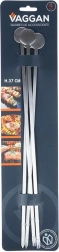 Praktikus, négy darabos, 37 cm hosszú acél nyárs szett finom hús- és zöldségnyársak készítéséhez grillen és sütőben. Rozsdamentes acélból készül matt felülettel, éles heggyel a könnyű felnyársaláshoz és kerek végződéssel az ételek lecsúszásának megakadályozására. Többször használható, tartós és könnyen tisztítható – remek alternatívája az egyszer használatos pálcikáknak.