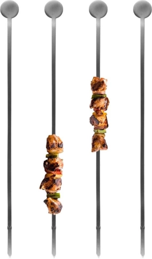 A 4 darabos rozsdamentes acél nyárskészlet megbízhatóságot és kényelmet nyújt grillezéshez és sütéshez. Az éles hegynek köszönhetően könnyen felnyársalhat húst, zöldséget vagy tengeri herkentyűket, míg a kerek vég megakadályozza az alapanyagok lecsúszását. A matt rozsdamentes acél hosszú élettartamot és korrózióállóságot biztosít.