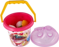A bájos „Ice Dream Bucket” homokozó szett bármely homokozót vagy strandot kis fagyizóvá varázsol. A gyerekek élvezhetik a kreatív fagylaltozós játékot, homokot merhetnek a fagylaltkanállal, és gombócokat készíthetnek tölcsérekbe. A könnyű, színes és biztonságos, CE tanúsítvánnyal rendelkező játék 1 éves kortól ajánlott.