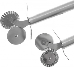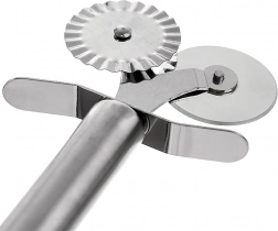 Egy sima kerék a tiszta, egyenes vágásokhoz és egy hullámos a díszes, recés szélekhez és a tészta lezárásához – ideális raviolihoz, kekszekhez és tarteletthez.