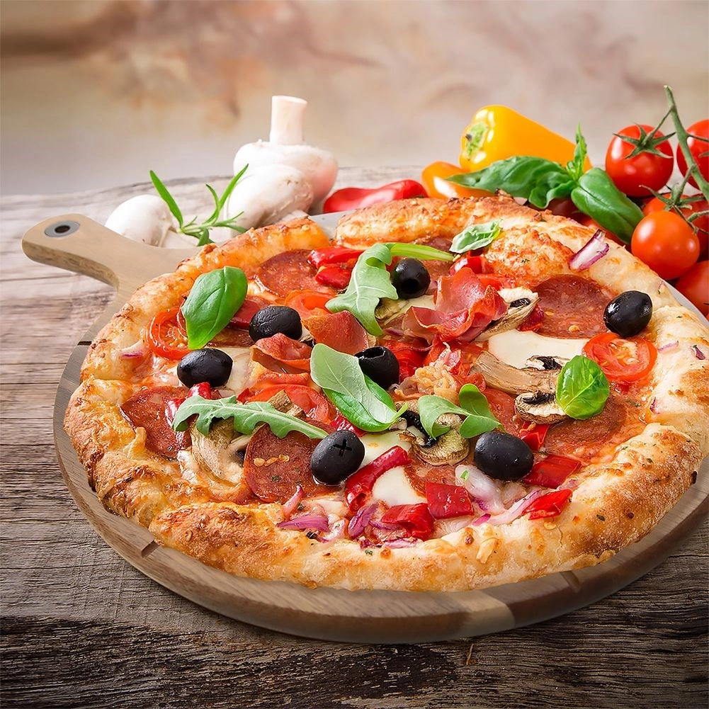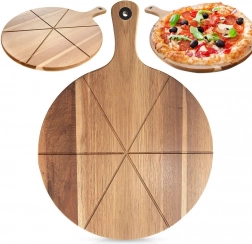 Ez a masszív, mégis könnyű akácfa deszka megkönnyíti a szeletelést és a pizza stílusos tálalását. A munkafelületen lévő vájatok hat egyenlő részre osztják a felületet, így minden vágás gyors, pontos és biztonságos. A sima oldal ideális sajtok, felvágottak, pékáru vagy desszertek tálalásához.