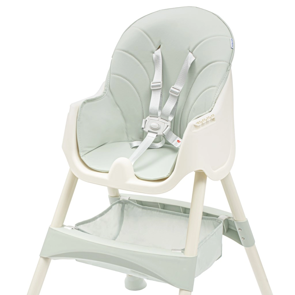 A stabil szerkezet csúszásgátló lábvégződésekkel megelőzi a nem kívánt elmozdulást, a lábtámasz pedig extra kényelmet ad ülés közben. A praktikus textil kosár az ülés alatt mindent elnyel – a törlőkendőktől a kis játékokig. Az alsó lábrész egyszerű eltávolításával a széket gyorsan alacsony székké alakíthatja játékhoz vagy önálló ücsörgéshez.