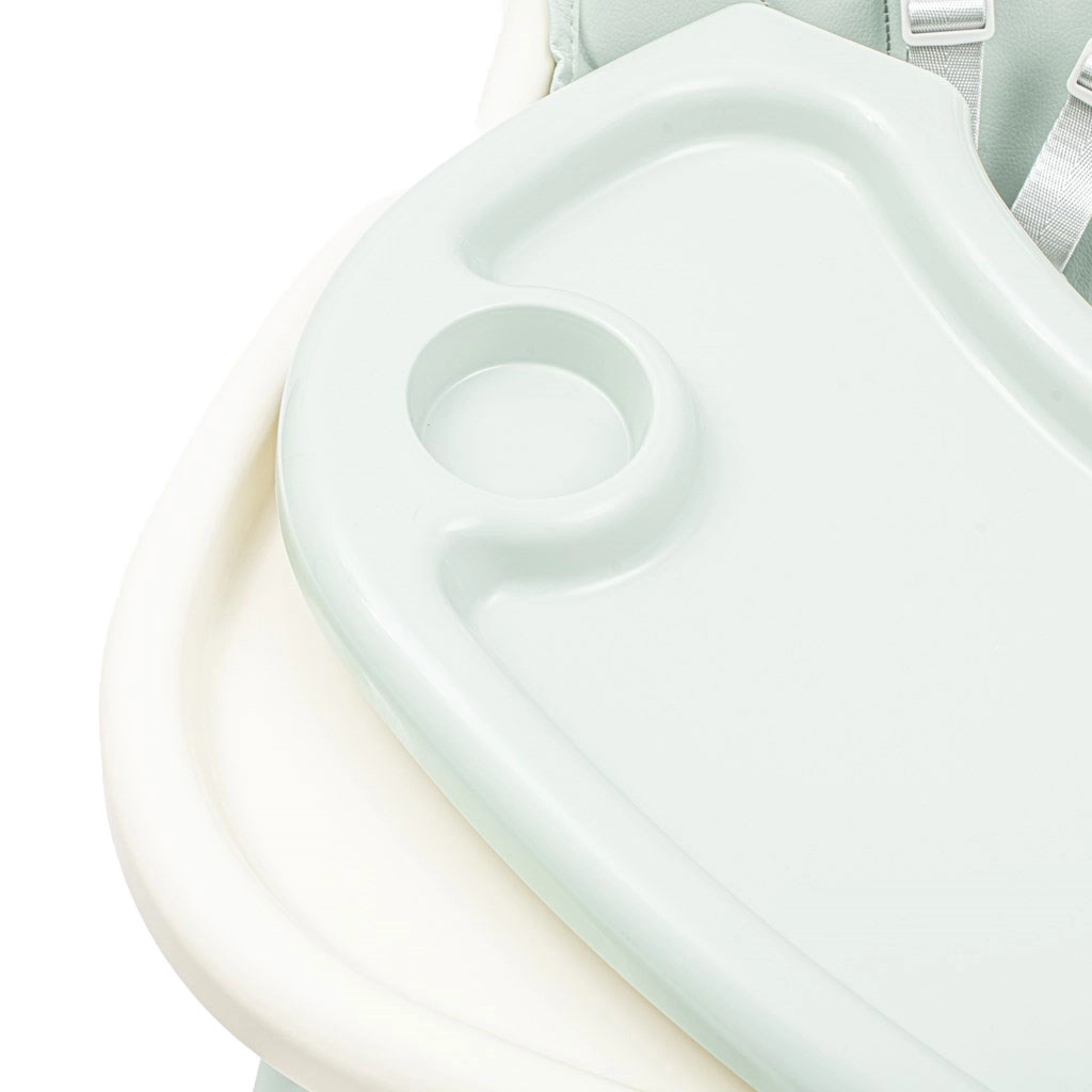 A felső lap könnyen levehető és leöblíthető. A beépített pohártartó és a lekerekített élek növelik az etetés kényelmét és biztonságát.
