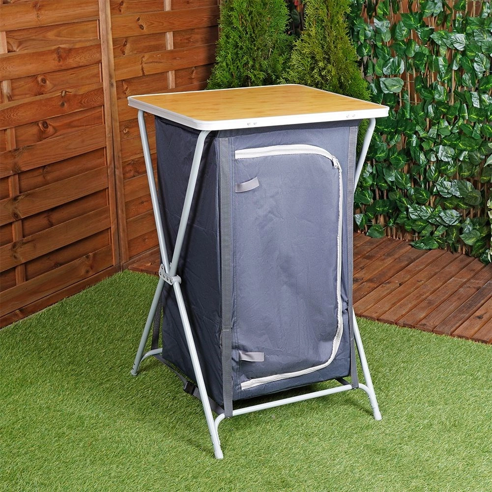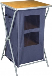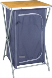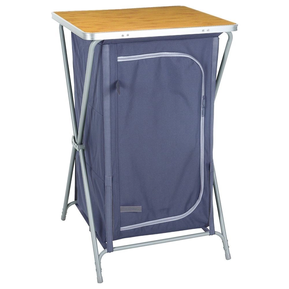 Ezzel az összecsukható kempingszekrénnyel útközben is rendezett és higiénikus tárolást kap. A tartós acélváz, a sötétszürke színű minőségi poliészter és a fa megjelenésű MDF felső lap stabil, mégis mobil kombinációt alkot, amelyet könnyen összecsukhat és felállíthat.