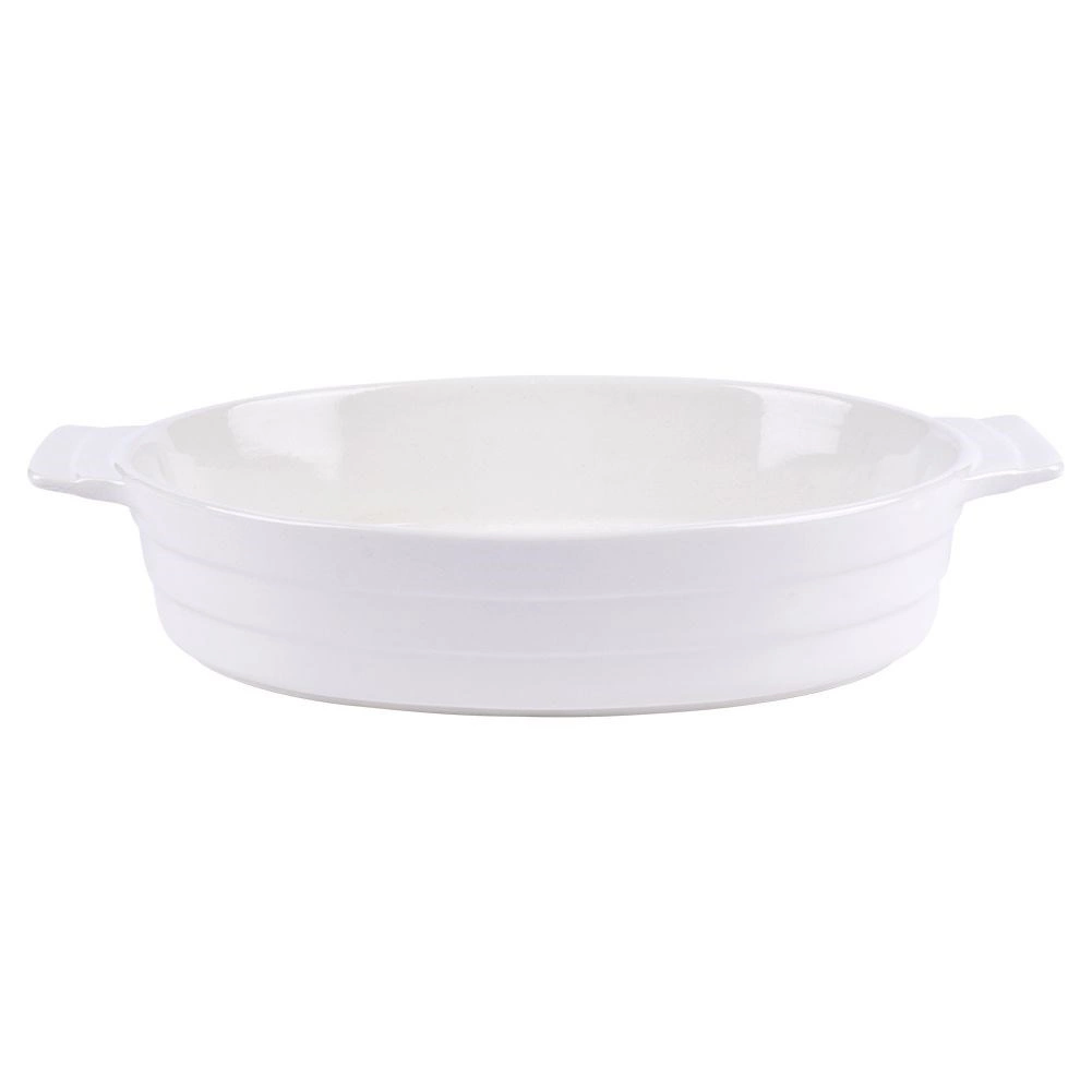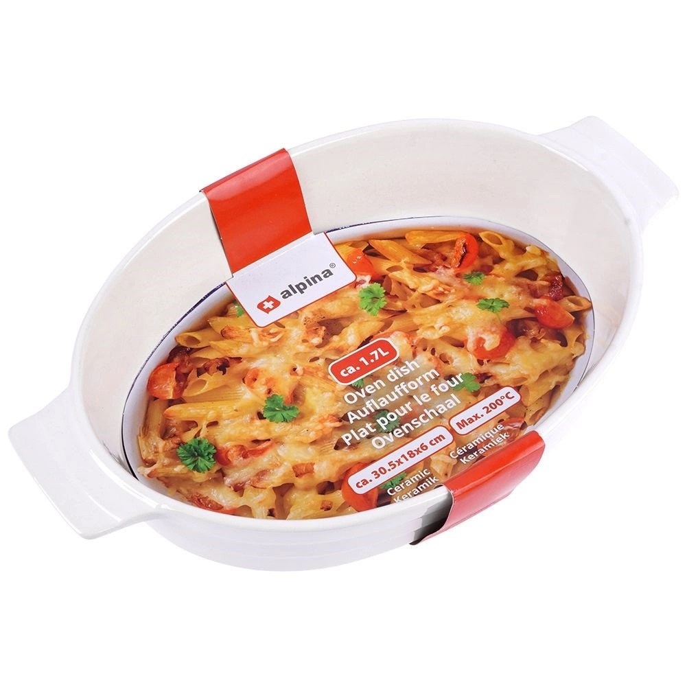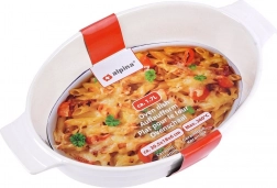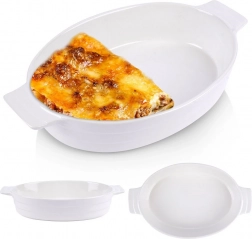 Praktikus, ovális sütőtál minőségi kerámiából, elegáns fehér színben. Ideális lasagnéhoz, rakott burgonyához és zöldségekhez. Beépített fülekkel a biztonságos áthelyezéshez, 1,4 l űrtartalommal, és sütőben használható 200 °C-ig. A könnyű karbantartás érdekében mosogatógépben mosható, és kiválóan alkalmas tálalásra közvetlenül az asztalon is.