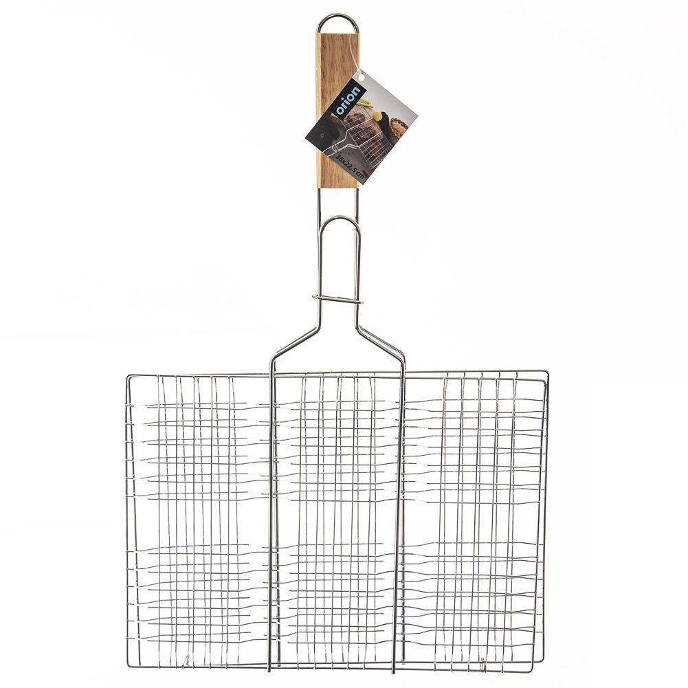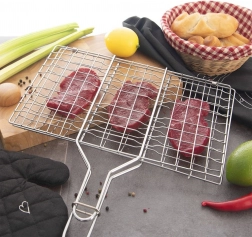 A kétoldalas, zárható rács remek segítőtárs a kényelmes grillezéshez. A zárómechanizmus szilárdan a helyén tartja az alapanyagokat, a hosszú fa nyél pedig megóvja a kezet a hőtől. Elég a rácsot megfordítani, és rendetlenség és morzsolódás nélkül érhet el egyenletesen átsült eredményt.
