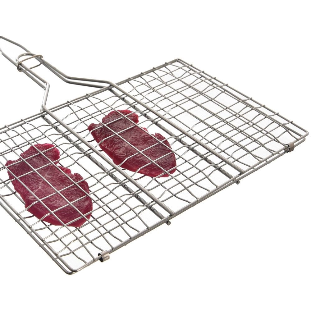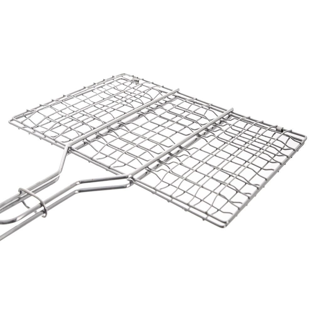 Minőségi krómozott fémből készül a tartósság és a könnyű karbantartás érdekében. Univerzális méreteinek köszönhetően a legtöbb grillhez illeszkedik, különösen alkalmas burgerek készítésére, de steakekhez, halfilékhez vagy törékeny zöldségekhez is.