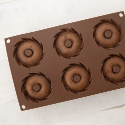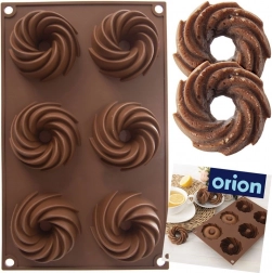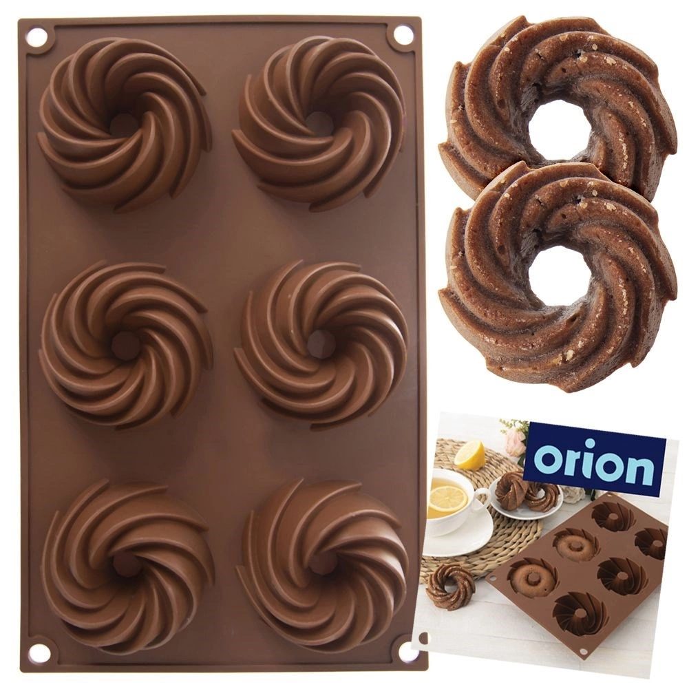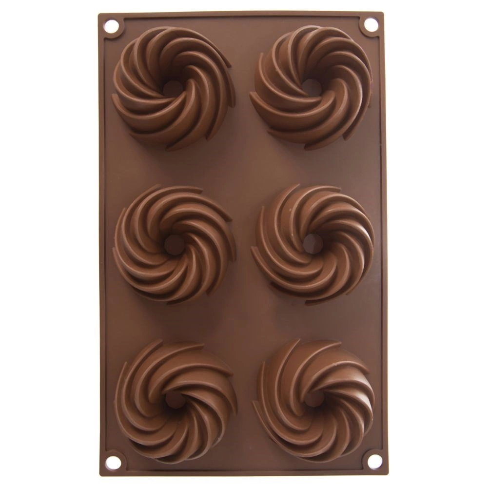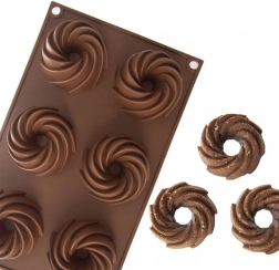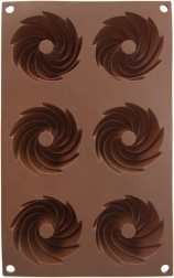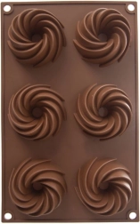 Praktikus elrendezés 6 üreggel, díszes spirál formával az egyenletes sütésért és a desszertek mutatós megjelenéséért.