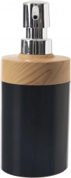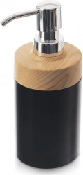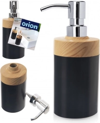 Elegáns adagoló folyékony szappanhoz vagy mosogatószerhez, 380 ml űrtartalommal, modern fekete színben fa dekorral és fémhatású pumpás kupakkal. Ideális fürdőszobába és konyhába, könnyen utántölthető, kompakt méreteinek köszönhetően tökéletesen elfér a mosdón vagy a konyhapulton. Tartós kivitel, egyszerű utántöltés és stílusos dizájn a mindennapi használathoz.
