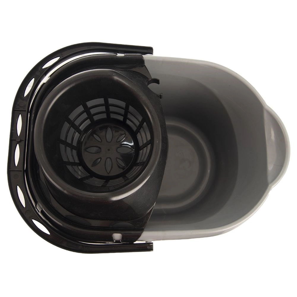 A vödör 12 literes, praktikus kiöntőcsővel rendelkezik, és csíkos (szalagos) és zsinóros felmosókhoz is alkalmas. A kicsavaró könnyen levehető, így a vödröt különféle házimunkákhoz is használhatja. Ideális választás a mindennapi takarításhoz felesleges rendetlenség és nedves kéz nélkül.