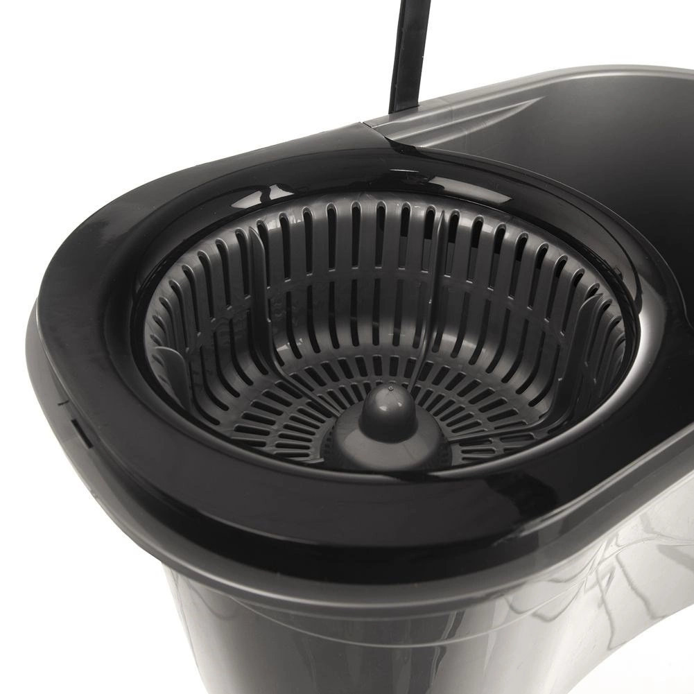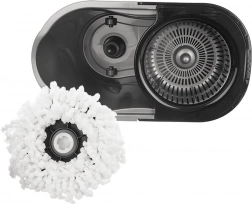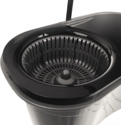 Praktikus forgó felmosó nagy, 19 l űrtartalmú vödörrel a könnyű és higiénikus takarításhoz, hajolgatás nélkül. Rendelkezik 90–120 cm-ig állítható nyéllel, forgó tisztítófejjel, amellyel a bútorok alatt is takaríthat, valamint mikroszálas huzattal, amely kiválóan szívja a nedvességet és nem hagy csíkokat. Felszereltsége: forgó csavaró, kerekek és kényelmes fogantyú az egyszerű hordozáshoz.