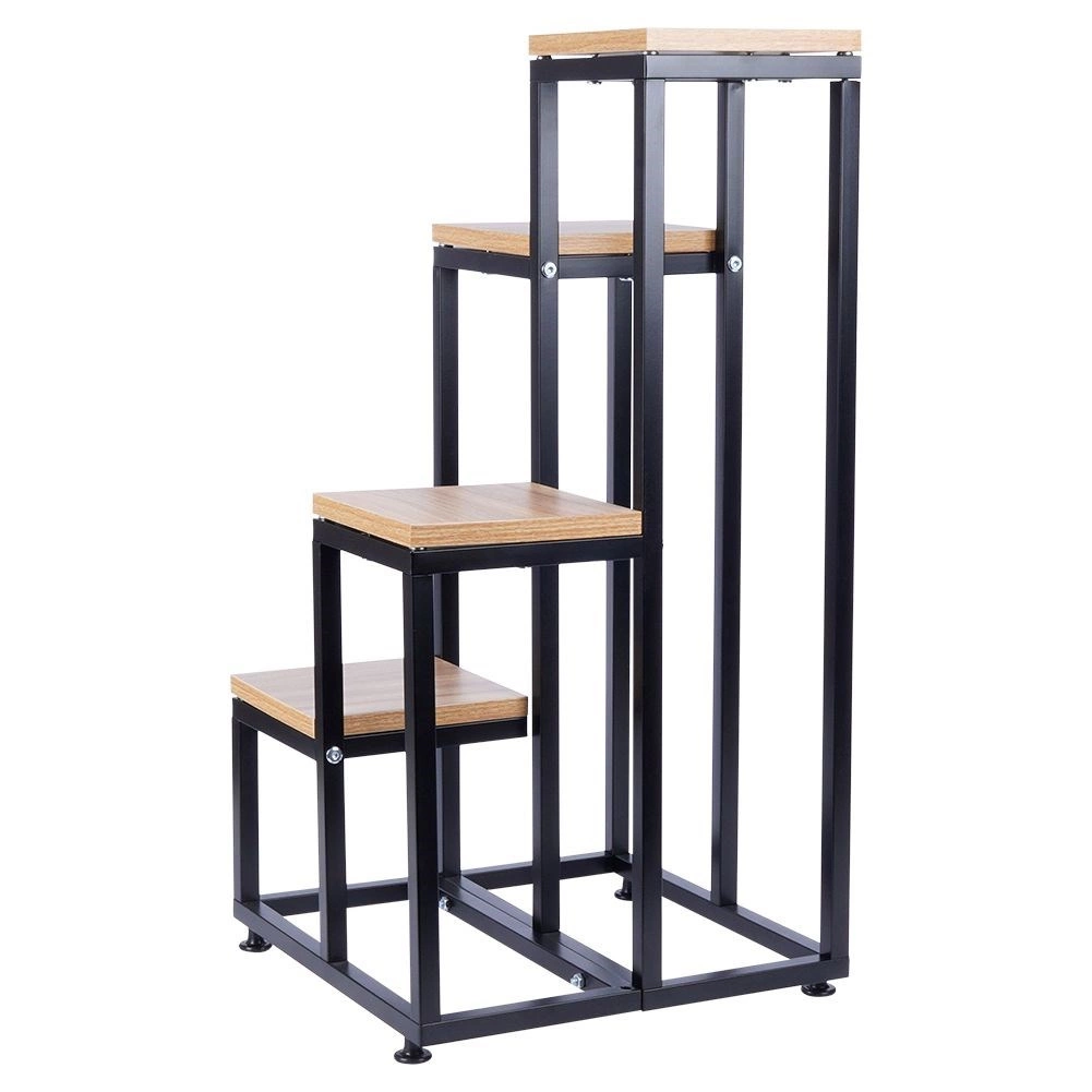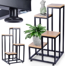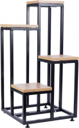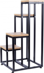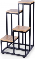 Vigyen modern loft hangulatot az enteriőrbe ezzel a négyszintes virágtartó állvánnyal. A fekete színű, stabil fém váz és a természetes fa textúrájú, minőségi MDF polcok időtálló kombinációt alkotnak, amely bármely térbe illik. Az állvány kiváló élő és műnövényekhez, valamint dekorációk elhelyezésére is.