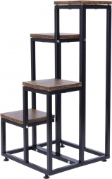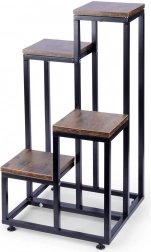 Stílusos, négypolcos virágtartó ipari loft stílusban. A fekete fém és a sötét fa dekorú MDF kombinációja akár 50 kg-ot is elbír, stabil, tartós, és alkalmas beltérbe, erkélyre vagy teraszra. A négy szintnek köszönhetően látványos növény- és dekorációkompozíciót hozhat létre, amely különleges karaktert ad a térnek.