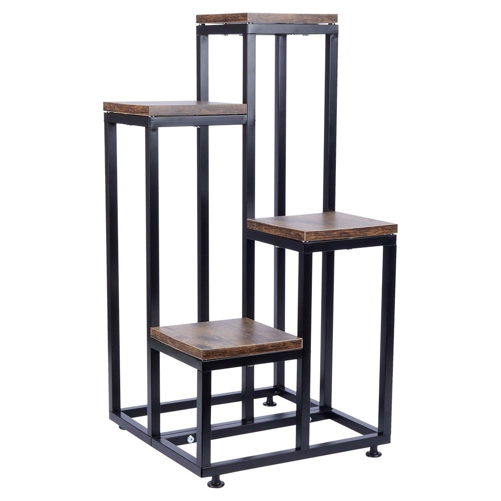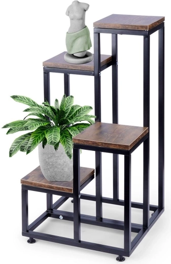 Vigyen modern, ipari hangulatot otthonába vagy irodájába. A fekete fémből készült, sötét fa dekorú, minőségi MDF polcokkal ellátott négyszintes virágtartó kompakt méreteket és magas stabilitást kínál. Remekül illik a nappaliba, konyhába, étkezőbe, előszobába, de irodába vagy váróterembe is.